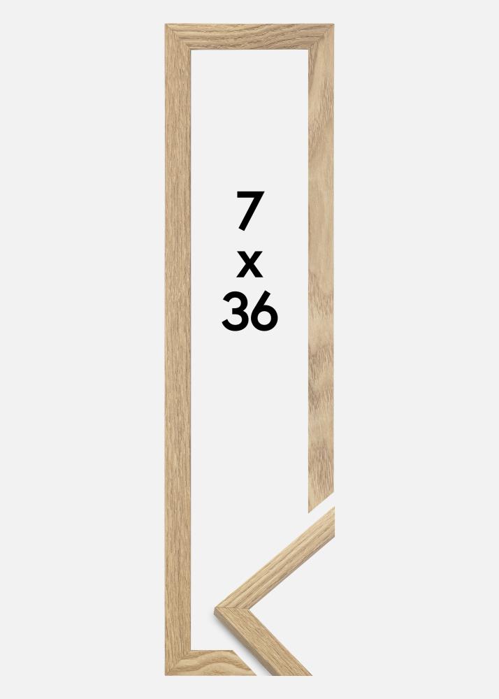 El marco está fabricado en material MDF con un acabado laminado de color roble y tiene un perfil de marco fino de 14 mm. Hay mucho espacio para complementar tus imágenes con un paspartú de lujo, gracias a la profundidad interna del marco de 12 mm.