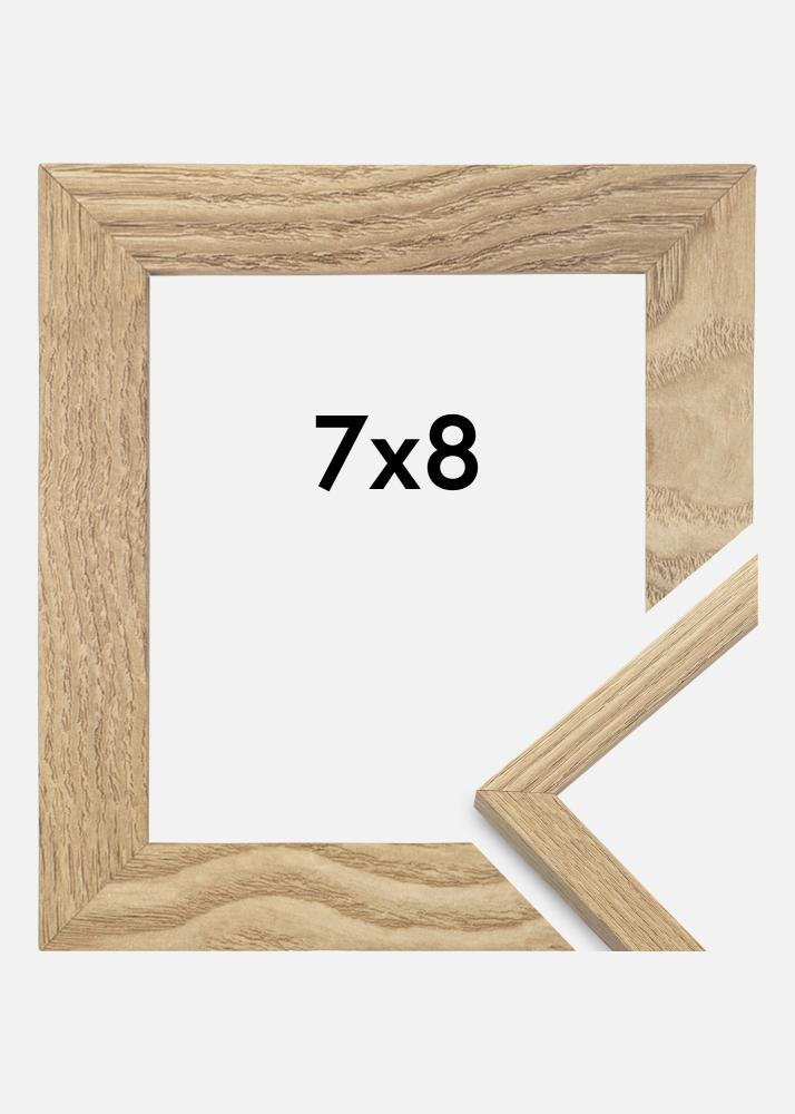 El marco está fabricado en material MDF con un acabado laminado de color roble y tiene un perfil de marco fino de 14 mm. Hay mucho espacio para complementar tus imágenes con un paspartú de lujo, gracias a la profundidad interna del marco de 12 mm.