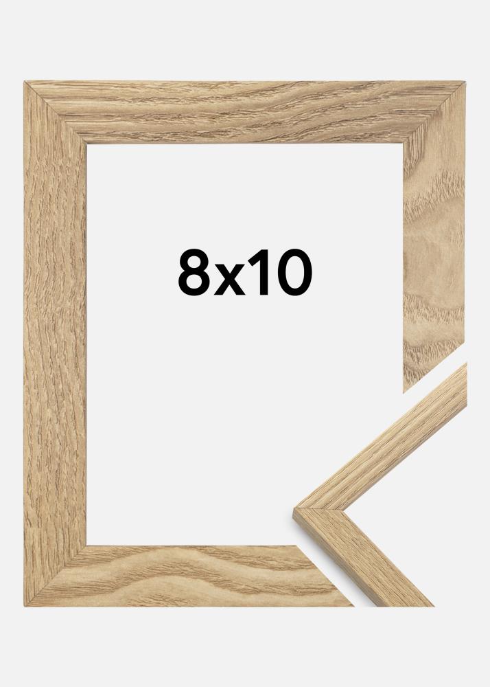 El marco está fabricado en material MDF con un acabado laminado de color roble y tiene un perfil de marco fino de 14 mm. Hay mucho espacio para complementar tus imágenes con un paspartú de lujo, gracias a la profundidad interna del marco de 12 mm.
