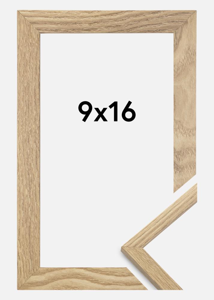 El marco está fabricado en material MDF con un acabado laminado de color roble y tiene un perfil de marco fino de 14 mm. Hay mucho espacio para complementar tus imágenes con un paspartú de lujo, gracias a la profundidad interna del marco de 12 mm.