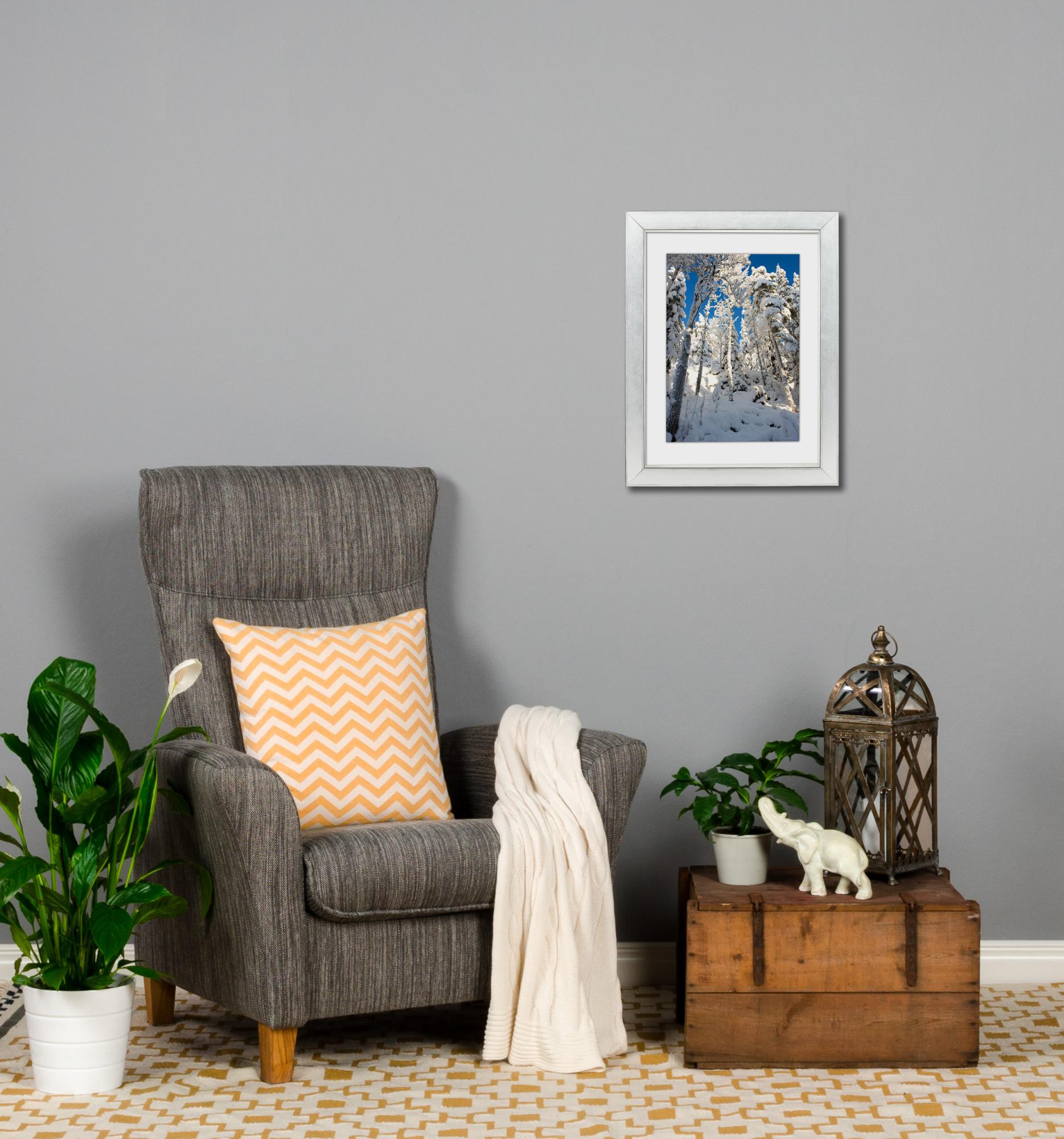 ¡Permítenos fabricar un elegante marco plateado para llevar tu imagen a nuevas alturas! Este elegante marco se fabrica según tus deseos en nuestro propio taller de enmarcado. El listón está hecho de madera y pintado con un agradable color plateado brillante. El marco combina perfectamente con diversos componentes de decoración en blanco, negro y lavanda. Si deseas unir la decoración de interiores de una manera elegante, puedes colocar objetos plateados como portavelas, latas o cuencos en la habitación.