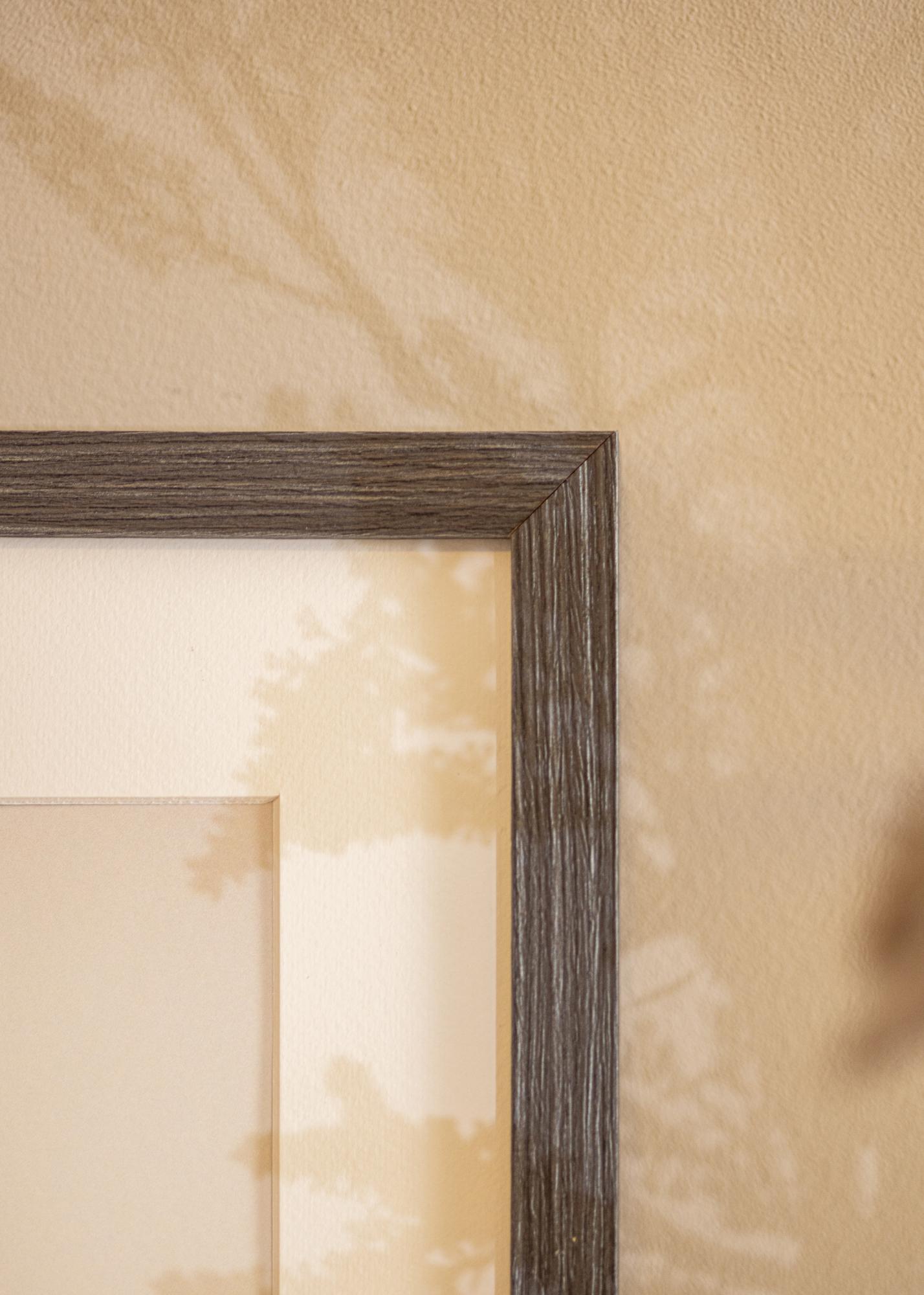 Wood Selection Grey I es un marco de cuadro a medida que ofrece una combinación perfecta de estilo y funcionalidad. Con su color gris y acabado de madera teñida oscura, este marco de fotos aporta un toque sofisticado a tus imágenes y obras de arte. La veta natural de la madera recorre los bordes y crea una dinámica visual que captura la mirada.