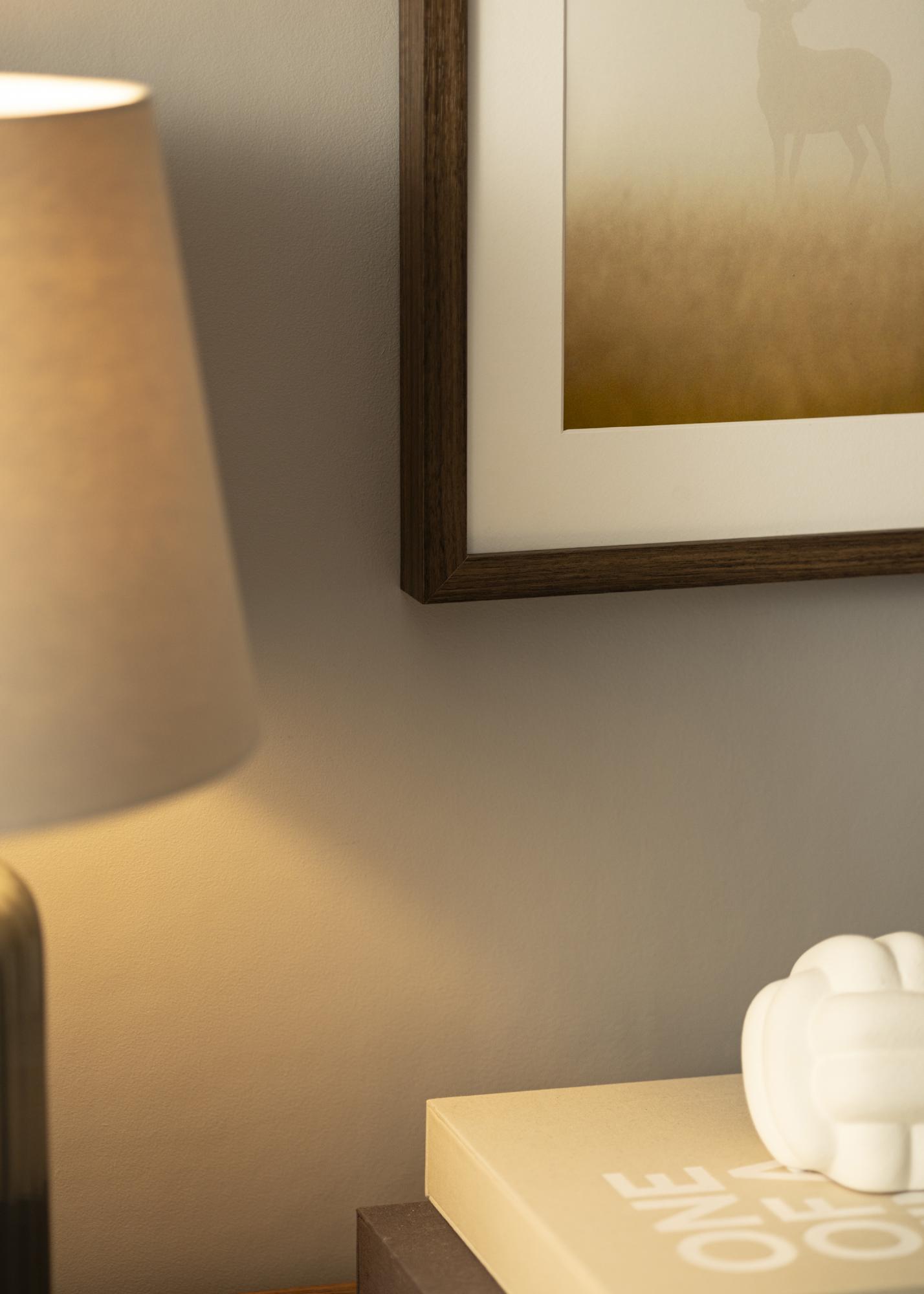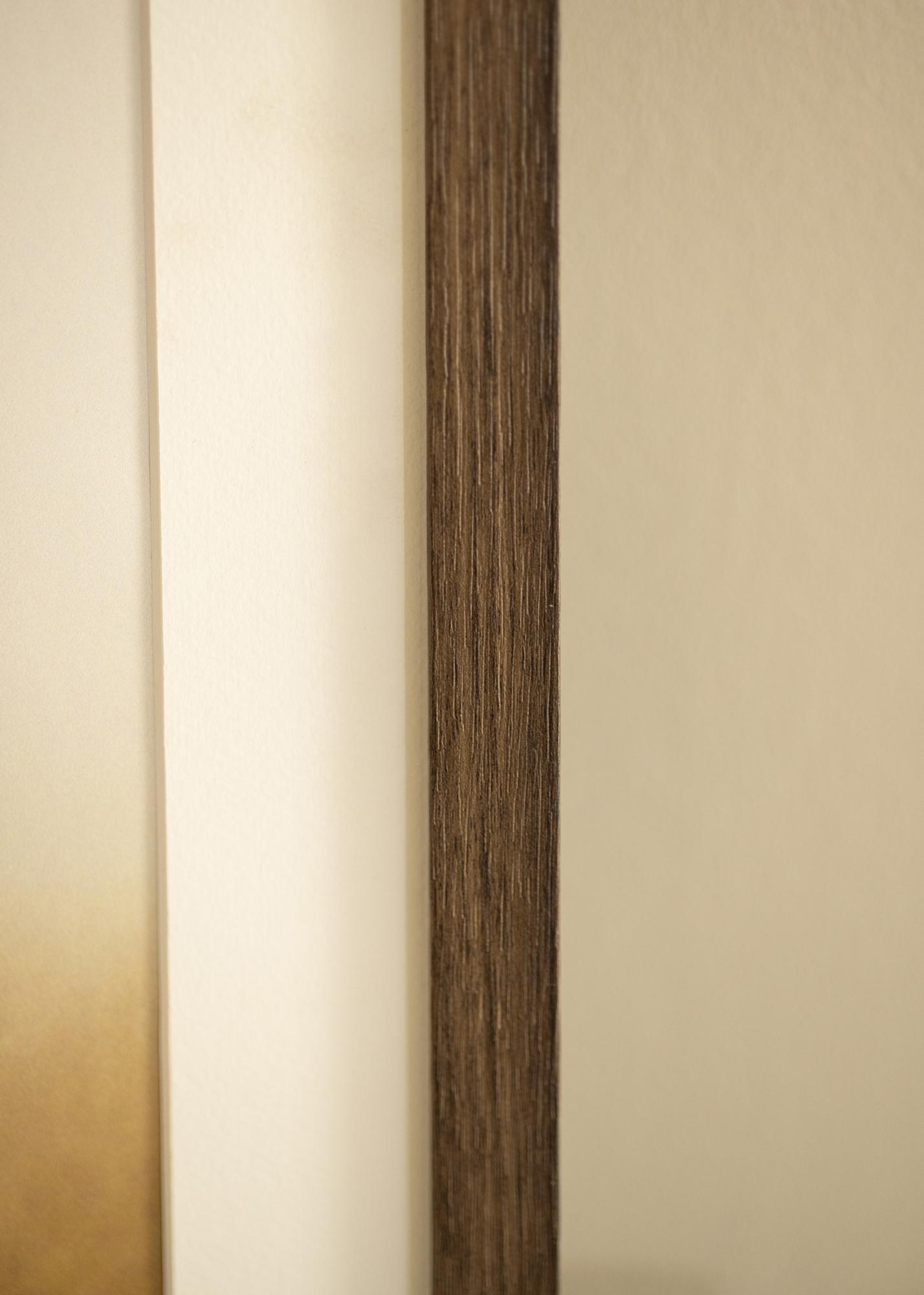 El marco tiene un listón de 21 mm de ancho y una profundidad de 38 mm, lo que aporta una sensación estable y robusta sin dominar el motivo. Los bordes rectos y el perfil delgado contribuyen a un diseño moderno y elegante que se integra fácilmente en diferentes estilos de decoración. Además, las sutiles variaciones de color en las vetas añaden profundidad y variación, haciendo que cada marco de imagen sea único.