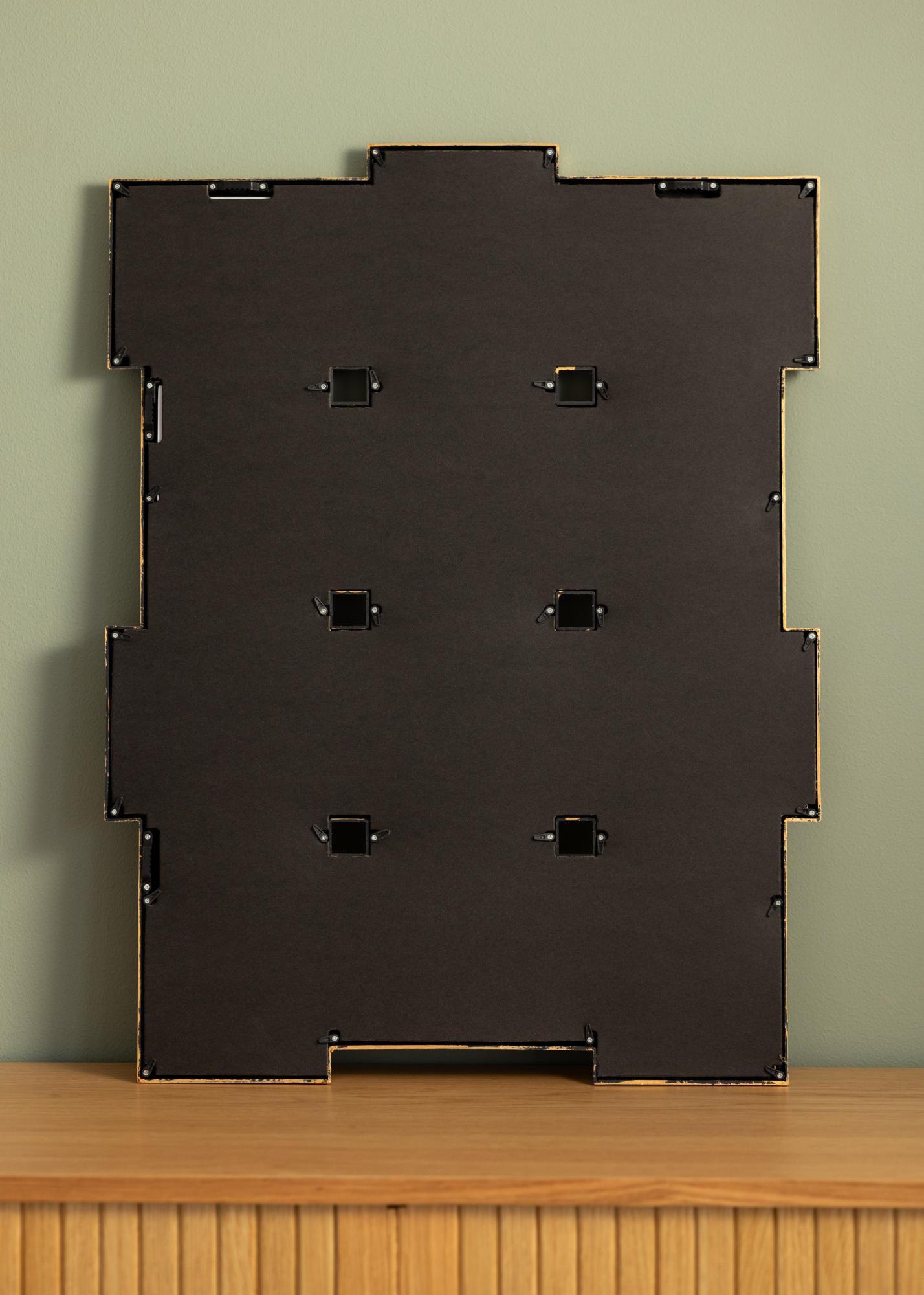 El marco collage está equipado con vidrio acrílico transparente, que es ligero y irrompible. Por lo tanto, un marco collage con vidrio acrílico es una excelente opción en lugares donde deseas una suspensión más ligera. En la parte pósterrior del marco hay soportes de pared para montarlo en posición vertical u horizontal.