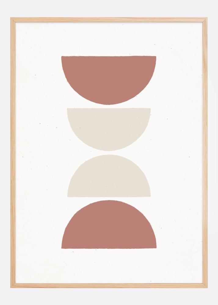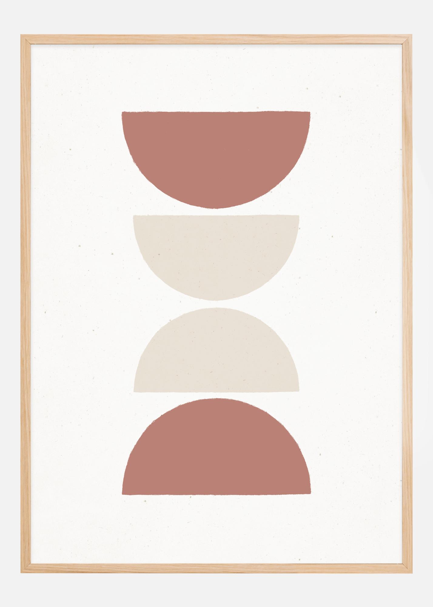 Este sofisticado cartel, titulado 'Rust and Sand - Lungo', captura la atención con su simple pero audaz disposición de formas semicirculares. Están apiladas unas sobre otras en una simetría calmante, creando una dinámica vertical sobre el fondo blanco. Con su discreta paleta de rojo oxidado y beige arenoso, esta impresión es un homenaje a lo sublimemente simple y aporta una sensación cálida y terrenal a cualquier espacio en el que se coloque.