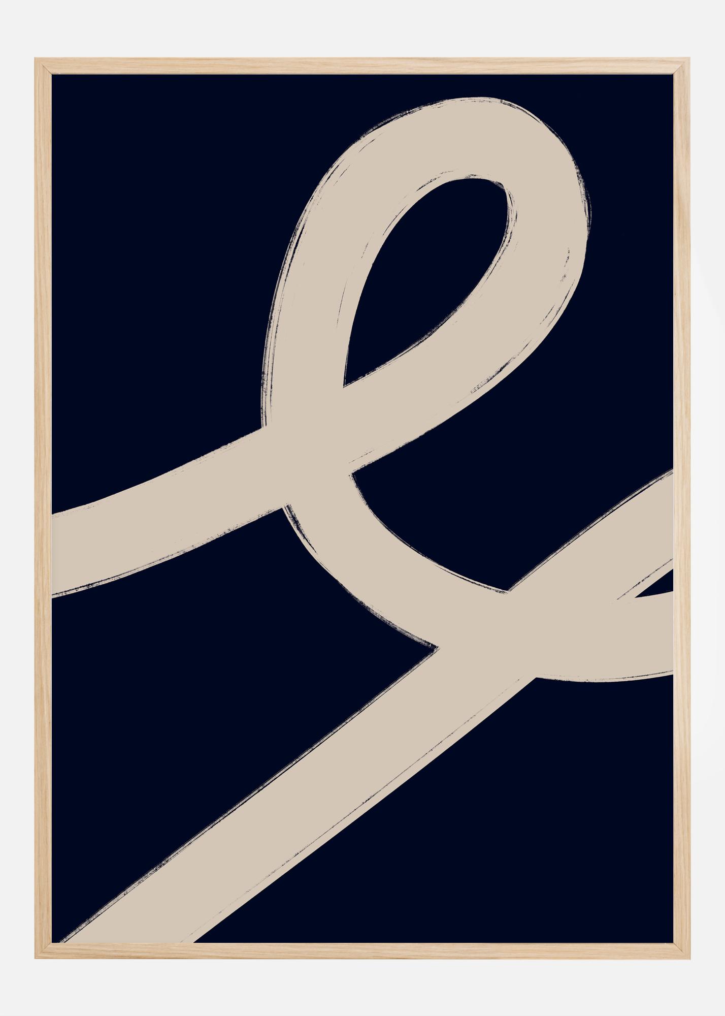 Este póster minimalista y contemporáneo captura la esencia del diseño escandinavo con su composición limpia y sencilla. Una gran forma de línea serpenteante beige juega contra un fondo azul profundo, creando una imagen que es a la vez calmante e interesante visualmente. El contraste entre ambos elementos es sofisticado y proporciona un fuerte efecto gráfico que resalta la belleza del arte abstracto.