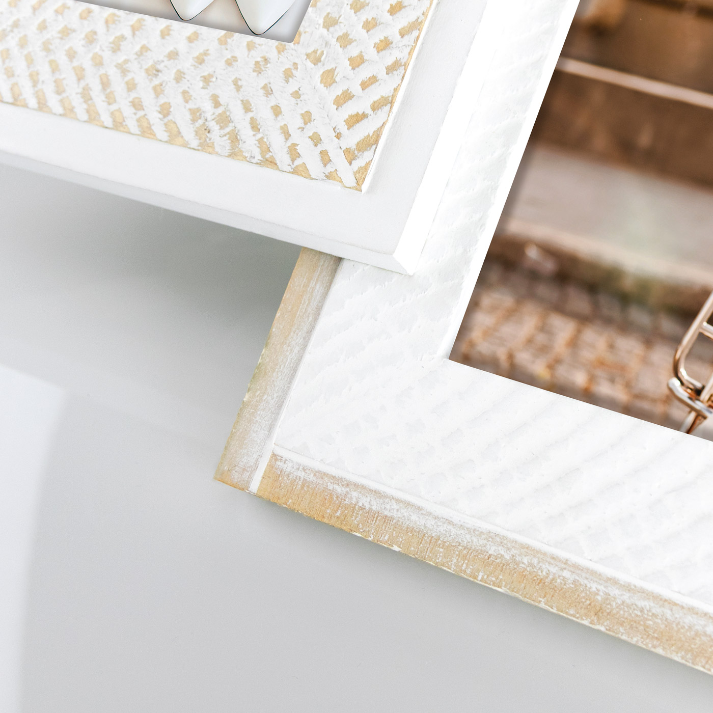marco collage rural en blanco y madera que enmarca elegantemente varias de tus imágenes y al mismo tiempo se convierte en un bonito detalle en tu hogar. Este bonito marco collage tiene espacio para 4 fotos en tamaño de imagen 10x10 cm / 10x15 cm / 13x18 cm. El marco collage está hecho de madera y las dimensiones exteriores miden 38,8x39,8 cm. Incluye soporte de pared.
