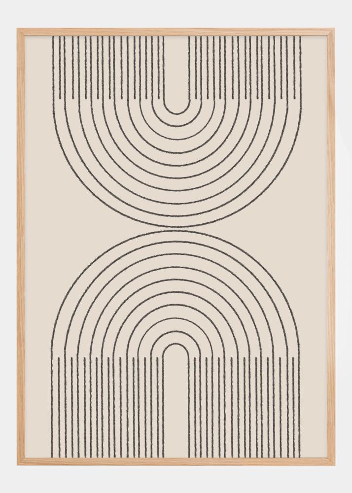 Este póster minimalista captura la esencia de la simplicidad con su diseño arquitectónico aerodinámico. Los arcos elegantes, dibujados con precisión, crean una sensación de calma y estructura, mientras que el negro sobre fondo blanco ofrece un contraste visual claro que es tanto audaz como simple. Esta representación artística es tanto moderna como atemporal, adecuada para una variedad de estilos de interior.