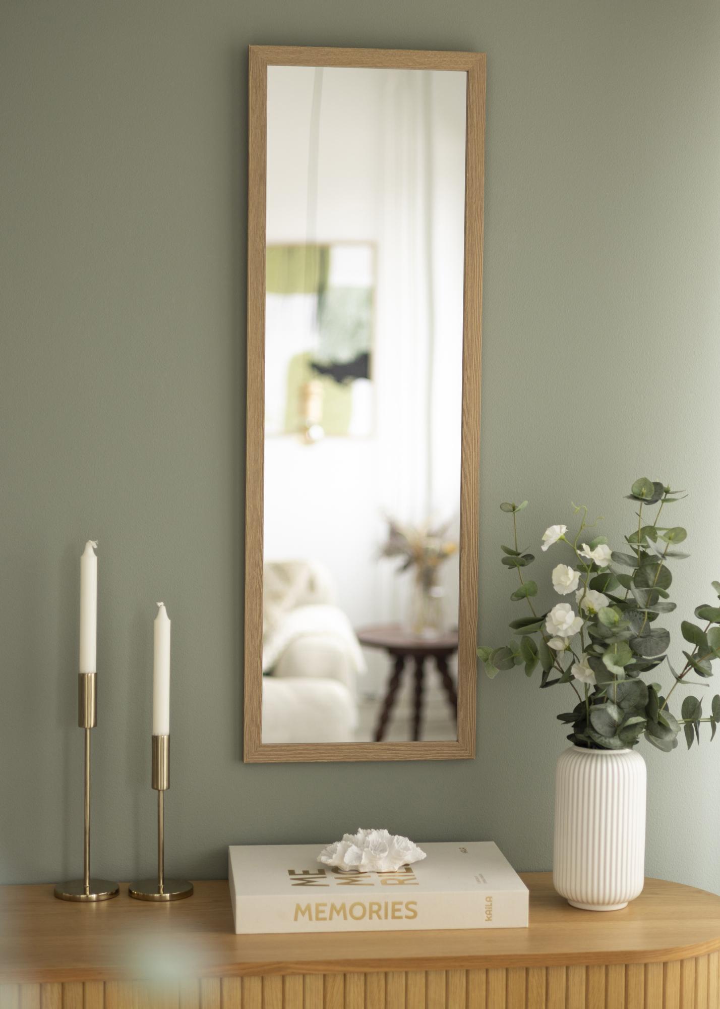 Este Espejo de puerta cuenta con un marco de madera delgado y moderno en Roble, que aporta una sensación cálida y natural. El acabado mate hace que el Espejo resulte discreto, a la vez que añade textura y carácter a la estancia.