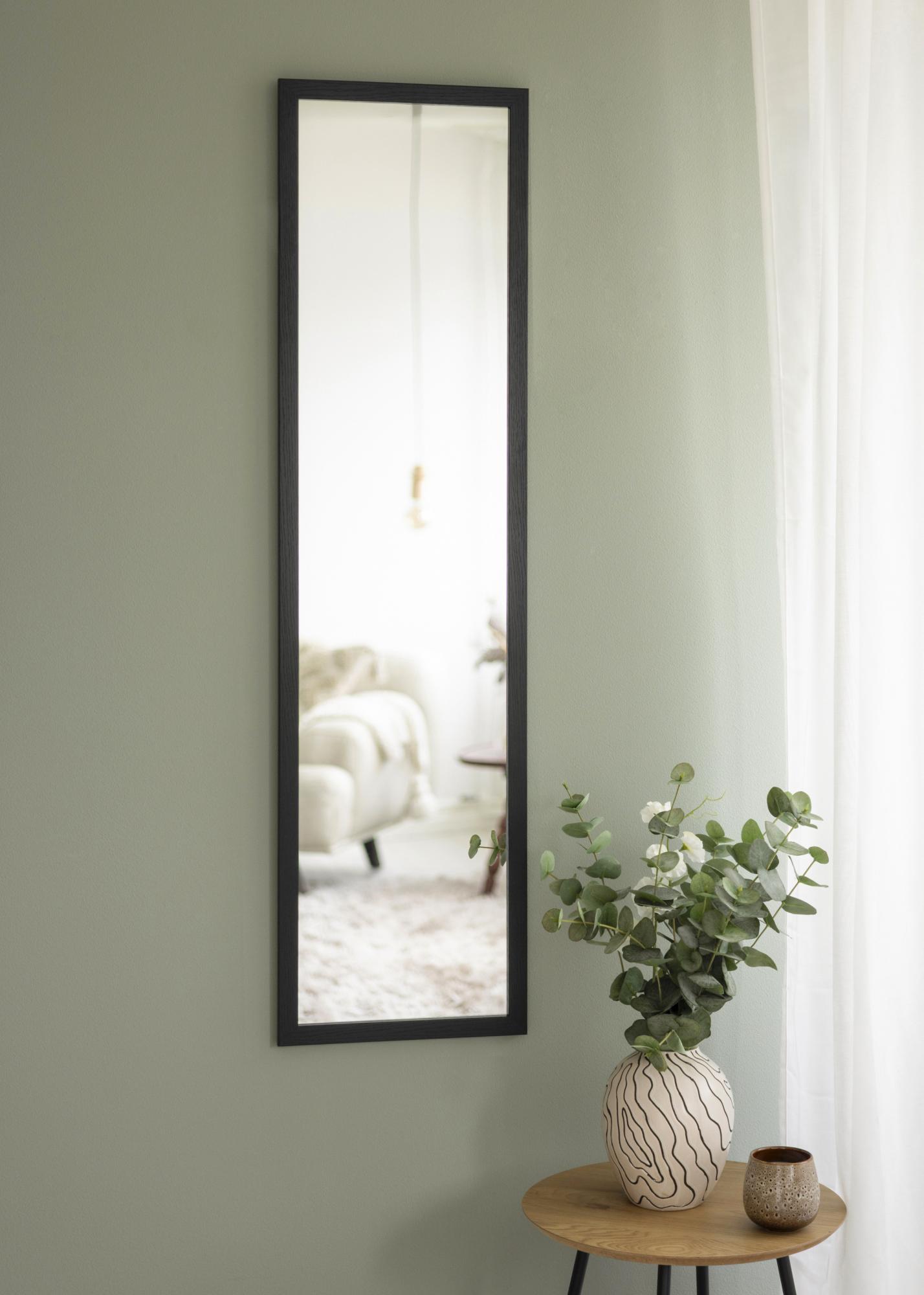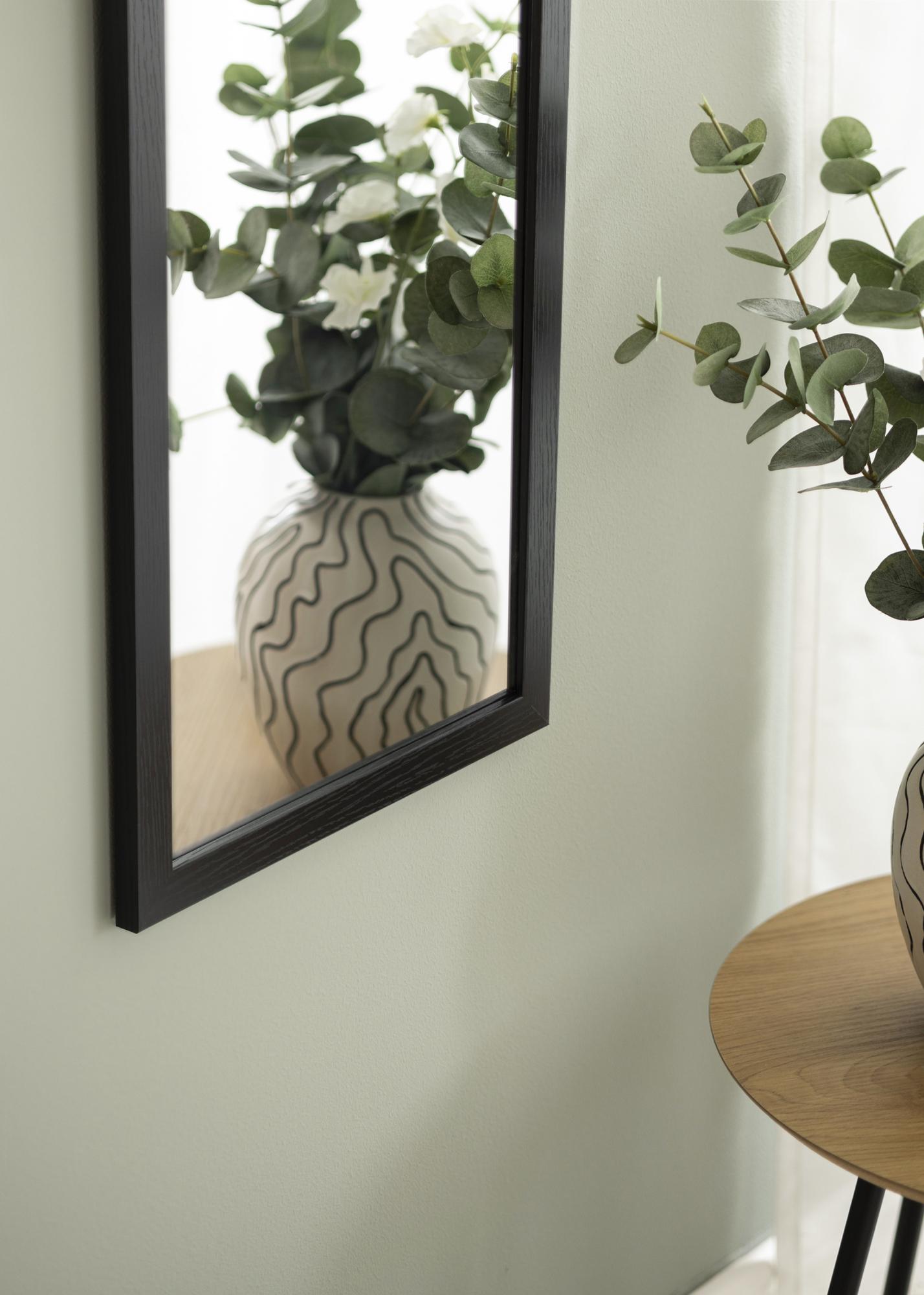 Este Espejo de puerta cuenta con un marco de madera delgado y moderno en color Negro, que aporta una sensación cálida y natural. El acabado mate hace que el Espejo resulte discreto, a la vez que añade textura y carácter a la estancia.