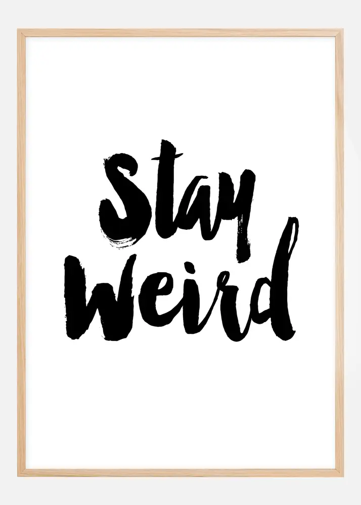 Muchos de nosotros crecemos creyendo que está mal ser diferente. Intentamos cambiar nuestros rasgos de personalidad para encajar, en lugar de sencillamente soltar la barrera y ser los maravillosos individuos que somos. ¡Tira esa barrera a donde crece la pimienta y consigue este maravilloso póster en su lugar! El póster tiene un diseño elegante y sencillo que consiste en el texto "Stay Weird" sobre un fondo blanco. El texto está escrito con una fuente que recuerda a los trazos de un pincel. Debido a que está disponible en varios formatos, funciona igual de bien en el escritorio que en la pared. Colócalo tal cual o combínalo con un elegante marco en 21x29,7 cm de nuestra amplia selección.