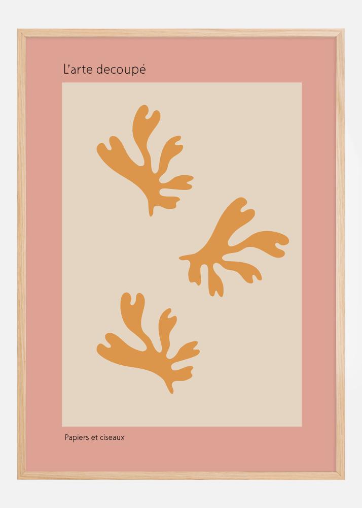 Descubre la belleza sutil del diseño minimalista con nuestra última colección de carteles. Esta elegante impresión, titulada 'L'arte découpé', presenta un trío de formas abstractas que recuerdan al coral o las plantas marinas, realizadas en una cálida paleta de tonos albaricoque y beige contra un relajante fondo color crema. Estas formas orgánicas están cortadas con precisión y flotan sobre la superficie, creando una sensación de movimiento y libertad. Perfecta para quien desee añadir un toque de sofisticada simplicidad a su hogar u oficina, esta impresión es una declaración de estética moderna.