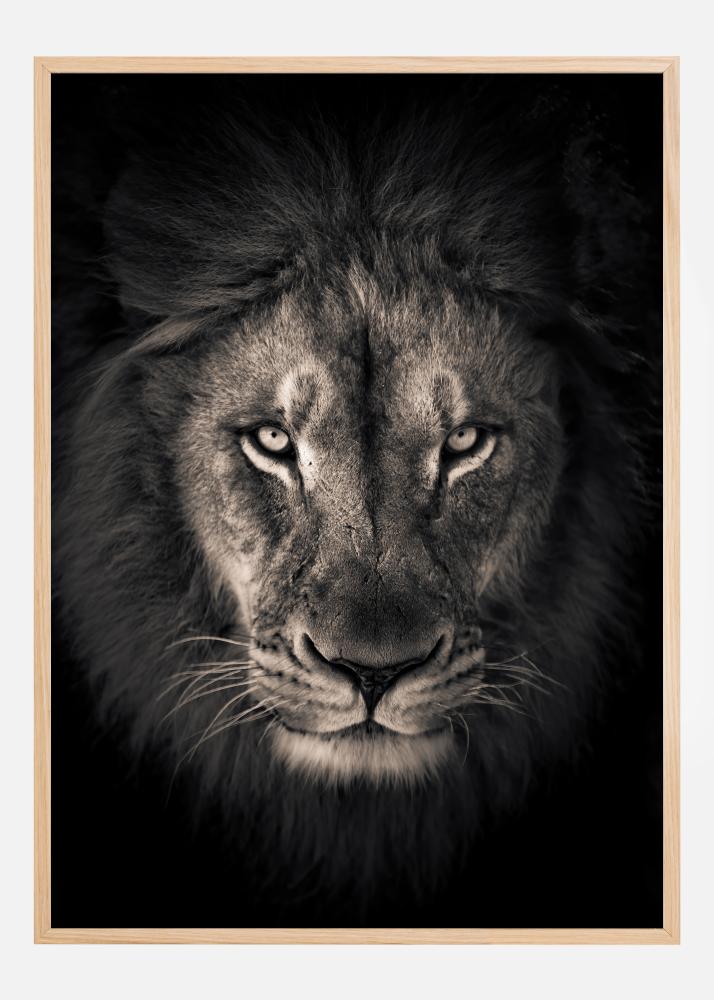 La imagen es un fuerte recordatorio de la grandeza de la naturaleza y la vida salvaje, donde el león se erige como símbolo de valentía y poder. Este póster sería perfecto en un espacio que aprecie los animales salvajes, la fotografía de naturaleza, o que busque un elemento de atrevida belleza. Su estética atemporal lo convierte en una impresionante adición en cualquier entorno, desde oficinas modernas hasta salones clásicos.