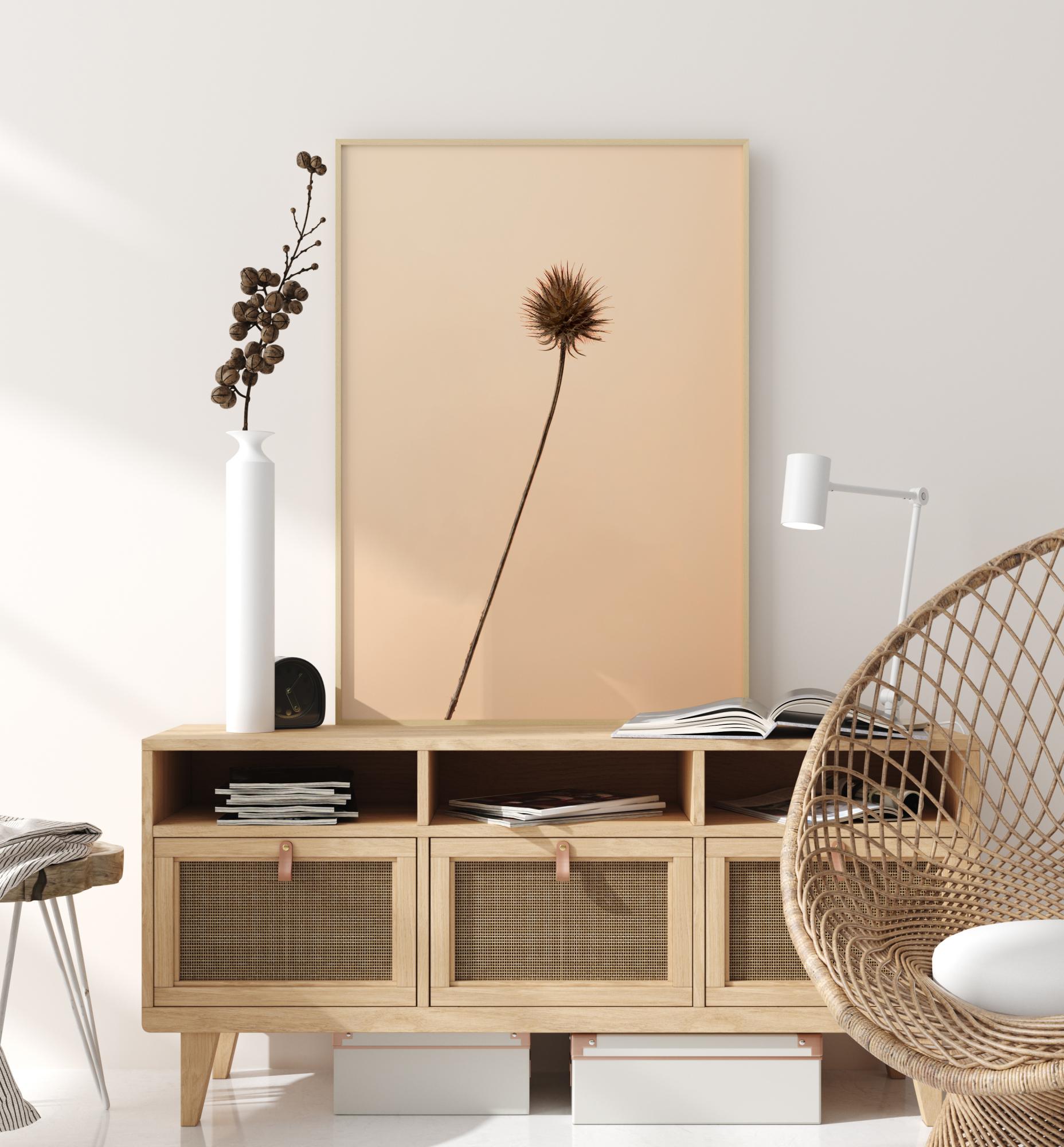 Un sencillo póster de flores con un cardo independiente sobre un cielo pálido. Mantente alto, orgulloso y solo, lleva esta impresión a casa y recuérdarte a ti mismo todos los días que puedes lograr todo lo que desees.