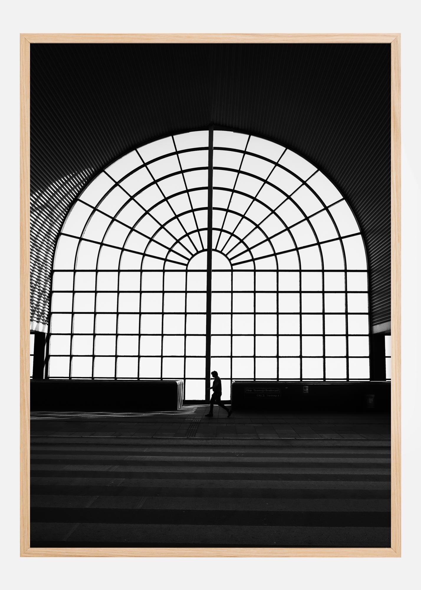 La obra titulada "Time to Travel" muestra una figura solitaria que cruza una amplia e impresionante arcada, claramente destacada por su simetría y patrones repetitivos. La grandiosa ventana curvada permite la entrada de luz y crea un dramático patrón de sombras y luces en el suelo, lo que resalta la silueta del solitario viajero. Esta imagen puede evocar pensamientos sobre viajes, transiciones y esos momentos en la vida en los que pasamos por diferentes fases en nuestro propio viaje.