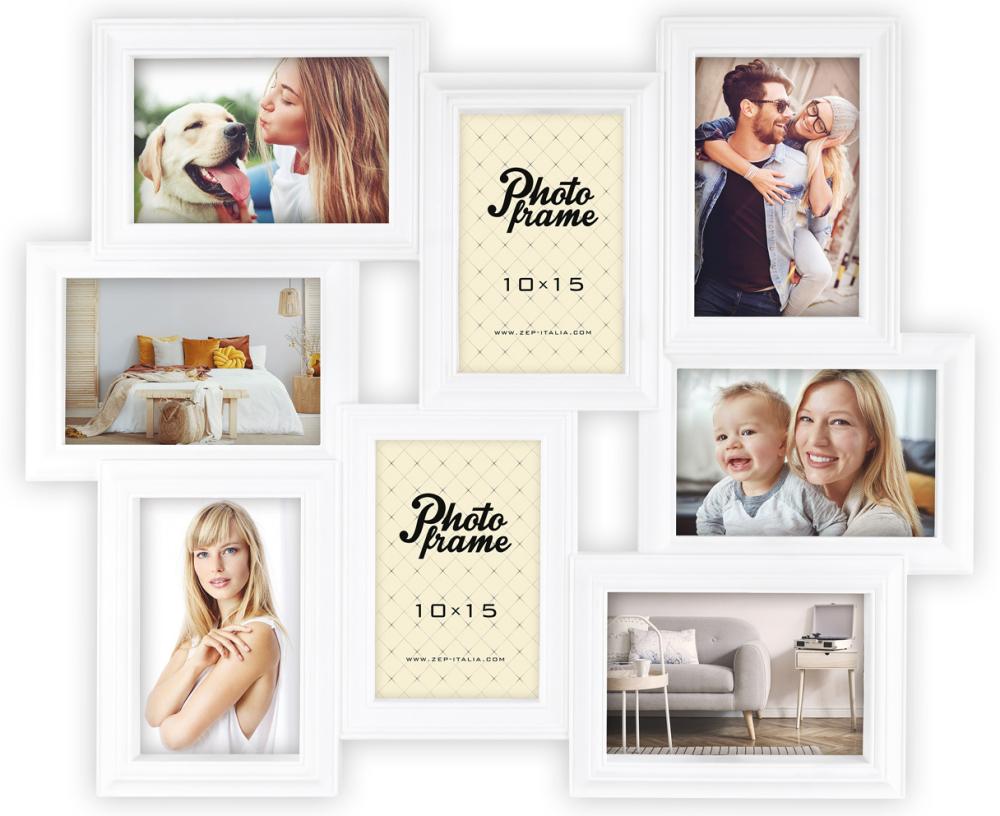 Este bonito marco collage te permite crear tu propio collage de fotos simplemente revelando tus fotos favoritas y enmarcándolas. El marco collage tiene capacidad para 8 fotos de tamaño 10x15 cm en formato vertical y horizontal. Las dimensiones exteriores del marco collage son de 42,5x52 cm y tienen un tono blanco. El diseño elegante hace que este marco collage se adapte a muchos hogares diferentes y sea fácil de combinar con otras bonitas decoraciones de pared y muebles.