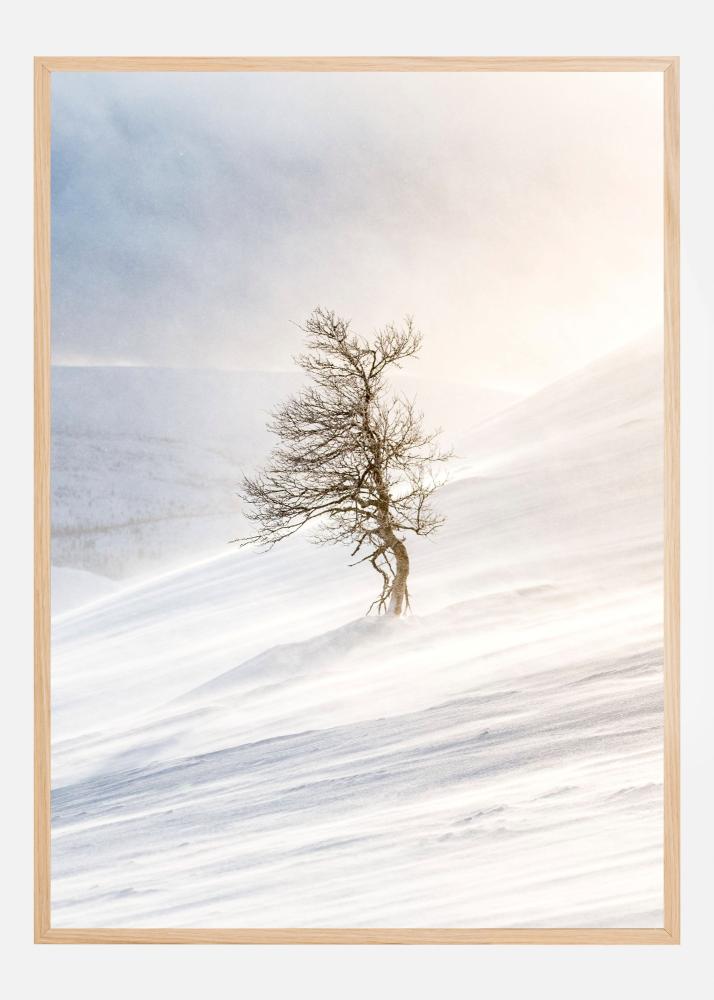 Este póster evocador muestra un árbol solitario en un paisaje invernal cubierto de nieve, donde el viento recorre suaves montículos y la luz crea una atmósfera soñadora y tranquila. El motivo tiene una expresión minimalista que encaja perfectamente como cartel o lámina en hogares modernos, decoraciones nórdicas y espacios donde se busca crear armonía y calma. El paisaje despejado hace que la imagen sea fácil de combinar con otros pósters en una pared de cuadros.