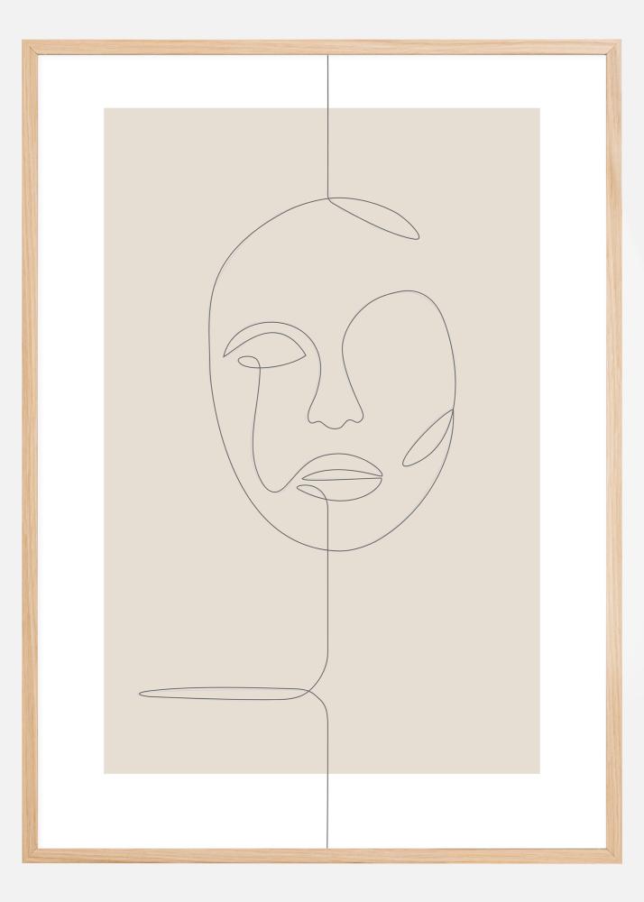 Un póster con un dibujo de líneas finas de una cara abstracta. Lo divertido aquí es que se utiliza una sola línea para crear la cara. La línea cae desde arriba como un hilo, se enrosca y crea la cara antes de caer al fondo de la imagen. El póster extrañamente convincente debe combinarse con una pared audaz para obtener más efecto.