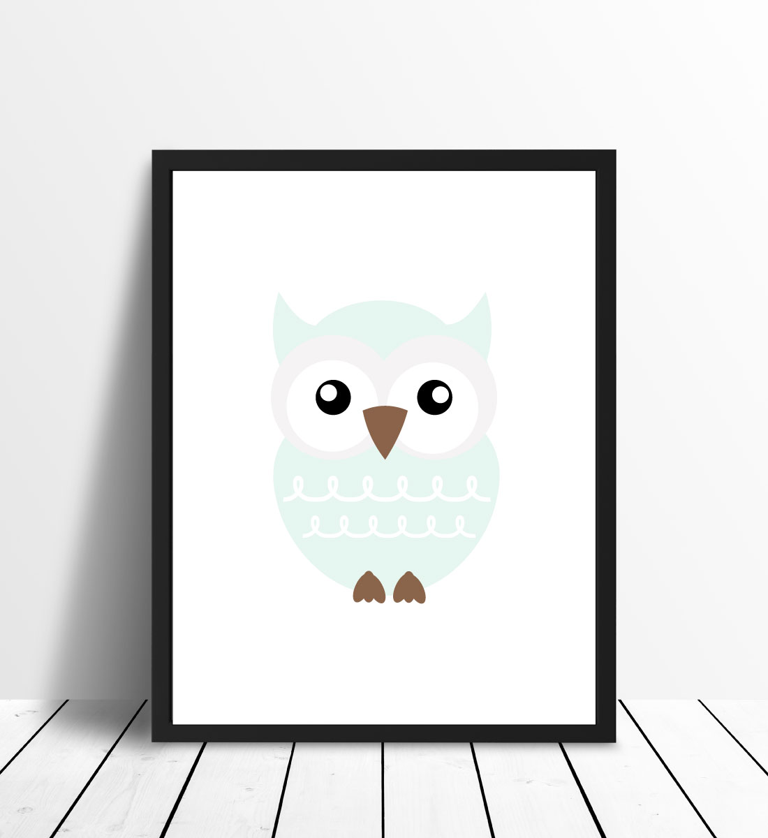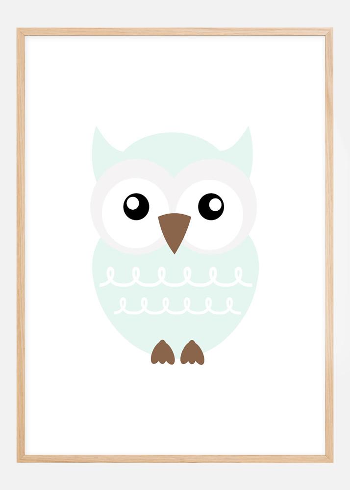 Un lindo póster con el búho número uno, el búho interior. La ilustración de un búho elegante de color azul hielo sobre un fondo blanco se ha convertido en un clásico moderno. El diseño se adapta tanto a la sala de estar como a la habitación de los niños y se ve aún mejor con una decoración que resalte los colores del cuadro. Combínalo con otros pájaros o animales para crear una sensación salvaje.