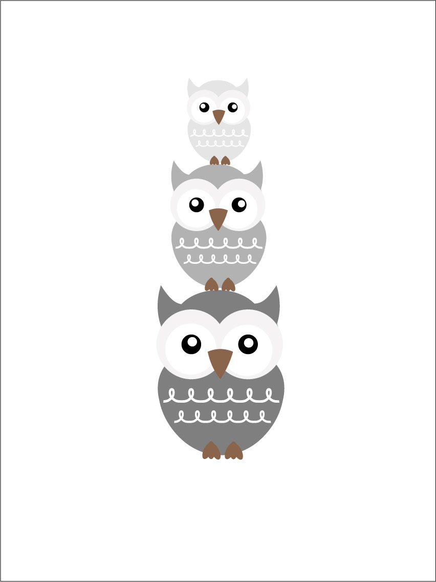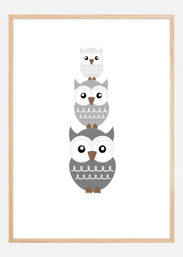 Tres es mejor que uno. Arte de pared con el número uno, el búho. La ilustración de tres búhos elegantes de color gris oscuro apilados uno encima del otro sobre un fondo blanco se ha convertido en un clásico moderno. El motivo encaja tanto en la sala de estar como en la habitación de los niños y se ve especialmente bien con una decoración que resalta el color del cuadro. Combínalo con otros pájaros o animales para crear una sensación salvaje.