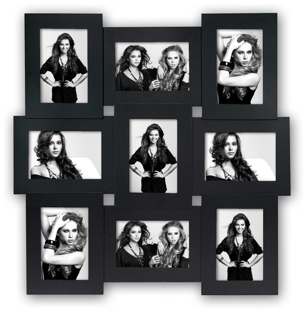 Moderno marco collage en negro con espacio para 9 fotos en formato horizontal y vertical. ¡Haz tu pedido hoy y crea tu propio fotocollage personalizado este fin de semana!