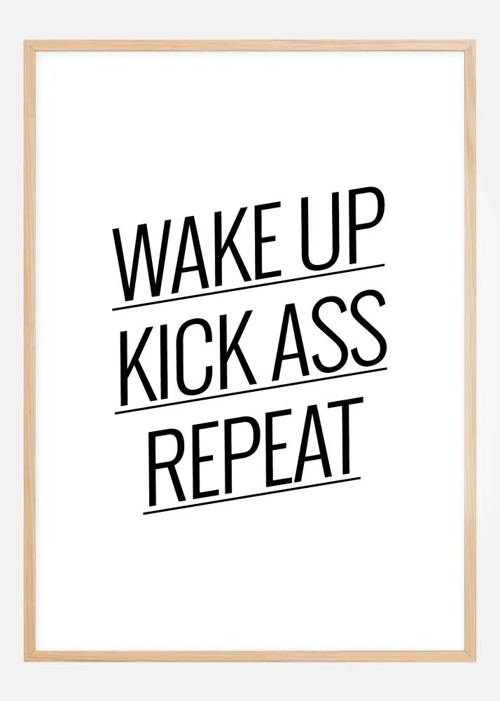A veces todos necesitamos un poco de ánimo en nuestra vida diaria. Coloca este hermoso póster en la pared para que lo veas lo primero que haces cuando te levantas por la mañana. El póster es blanco con un texto ligeramente inclinado y de inspiración retro que dice "Dessoporterta, patea traseros, repite". El diseño en blanco y negro combina perfectamente con un marco colorido de nuestra amplia selección. Como el póster está disponible en 6 tamaños diferentes, puedes estar seguro de encontrar uno que se adapte a ti.
