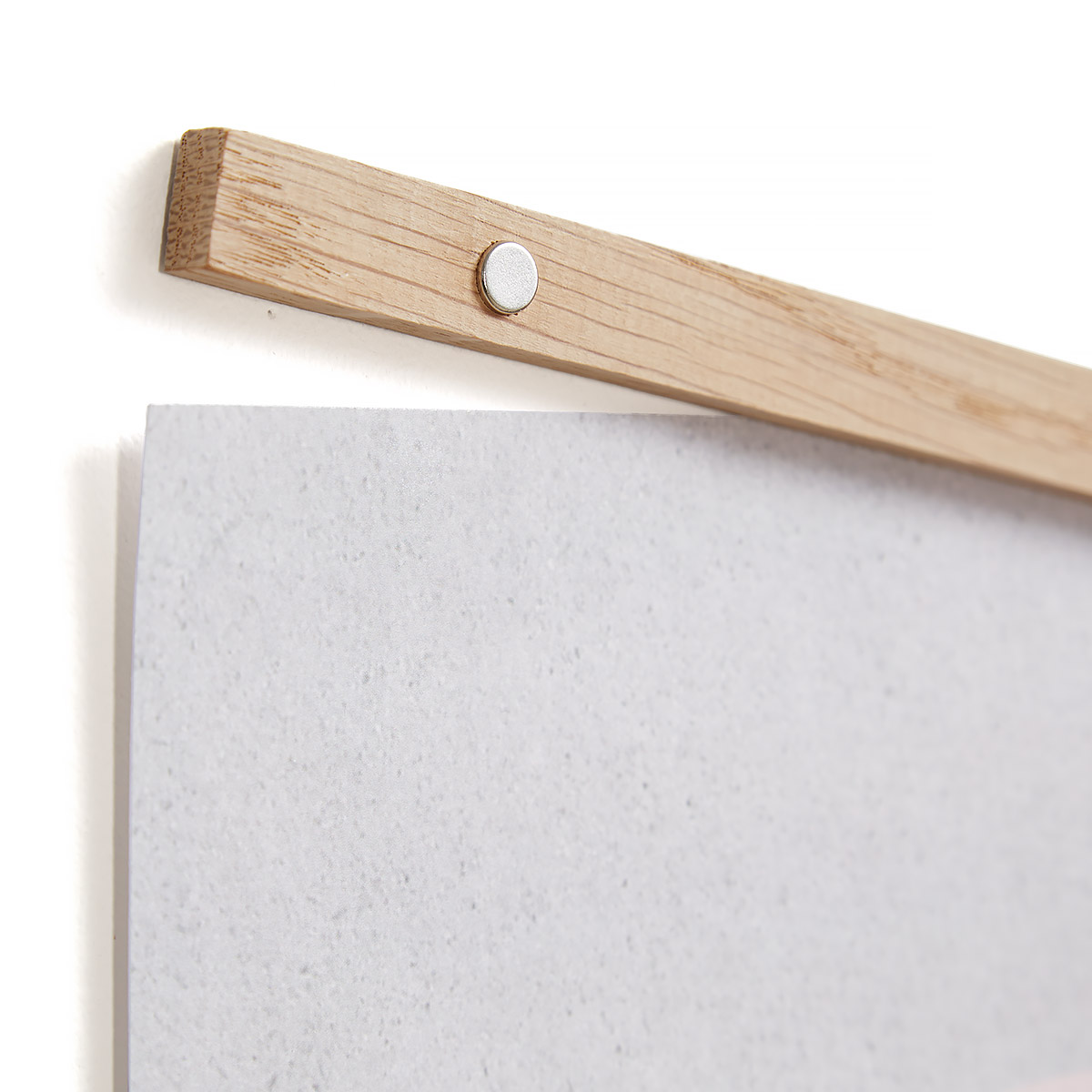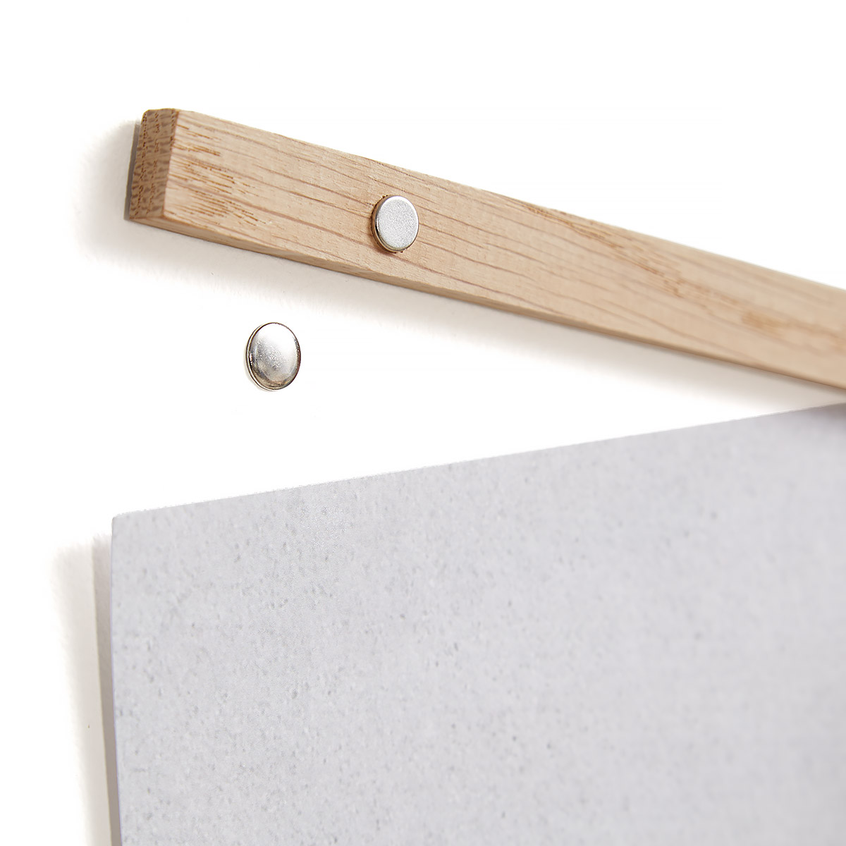 Con los clavos magnéticos incluidos, puedes fijar estas listas directamente en la pared y entre ellas puedes colocar tu póster.