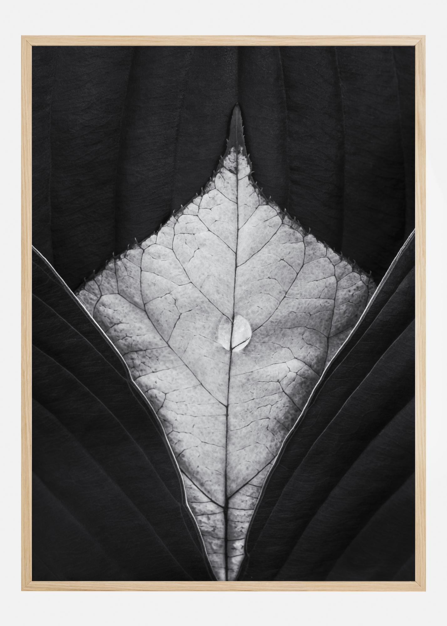Un póster de naturaleza en primer plano de una gota de agua en una hoja. La fotografía macro de las hojas te permite ver lo que quieras en esta imagen algo abstracta. Compra este póster, cuélgalo y interpreta la imagen como quieras.