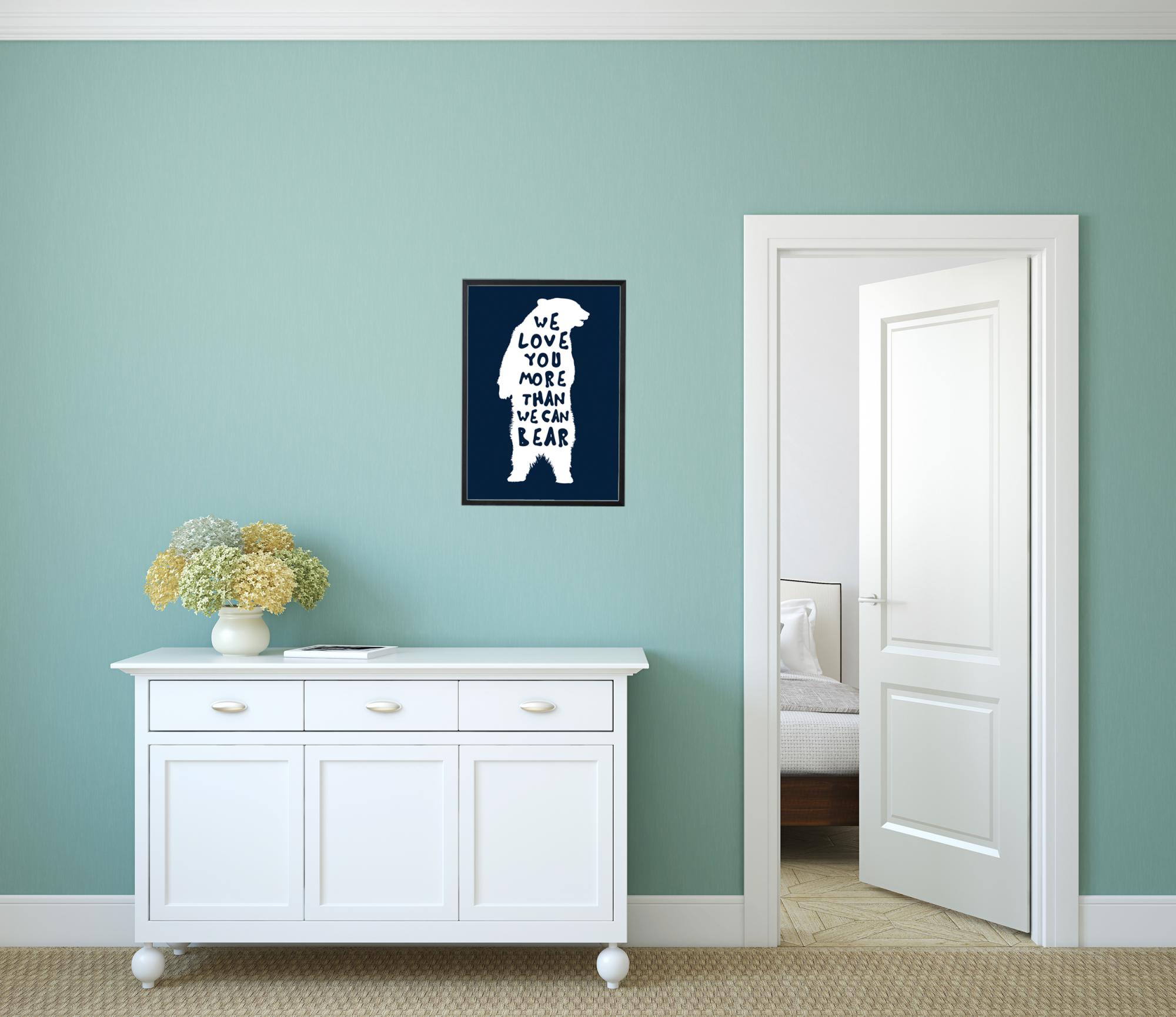 Un póster ingenioso y a la vez amoroso que es perfecto para aquellos a quienes les gustan los osos un poco más de lo normal. La impresión gráfica es un regalo hermoso para mostrar aprecio a alguien. El póster tiene la silueta de un oso en blanco sobre un fondo oscuro y una tipografía artística en blanco para la cita. Enmarca el póster con un marco elegante y moderno que se ajuste a la decoración general para crear una sensación de armonía en el ambiente.