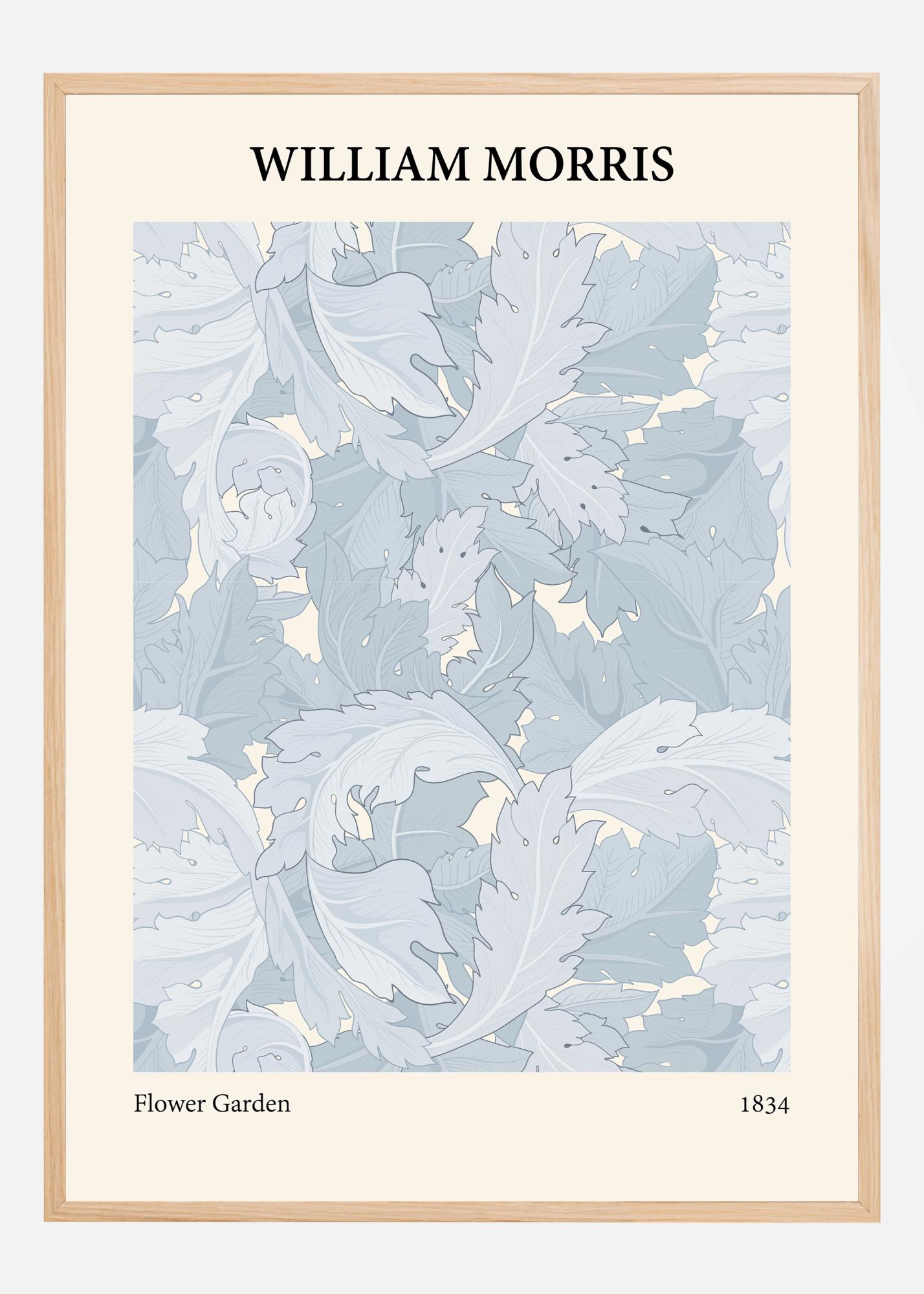 Con una atmósfera de calma y elegancia, este póster de William Morris presenta una sinfonía de follaje intrincado en una paleta de colores fresca y relajante. "Jardín de Flores", como sugiere el título, captura la esencia de un jardín exuberante y silencioso a través de su detallado patrón de hojas que fluye sobre la superficie con un ritmo suave. La paleta de colores está cuidadosamente seleccionada para reflejar la belleza sutil de la naturaleza e incluye azul celeste, verde hoja y colores crema pálidos, que juntos crean una estética armoniosa y equilibrada.