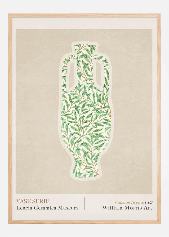 Este delicado y natural poster es el número 07 de nuestra "Colección de Arte Curada" del Museo Lencia Ceramica, que celebra el legado artístico de William Morris. Representa una silueta de jarrón clásico, lleno de uno de los distintivos patrones verdes de Morris, lo que muestra su forma magistral de combinar forma y función con belleza estética en el diseño. Es un homenaje intemporal a la visión de Morris y su capacidad para tomar inspiración de la naturaleza y transformarla en arte.