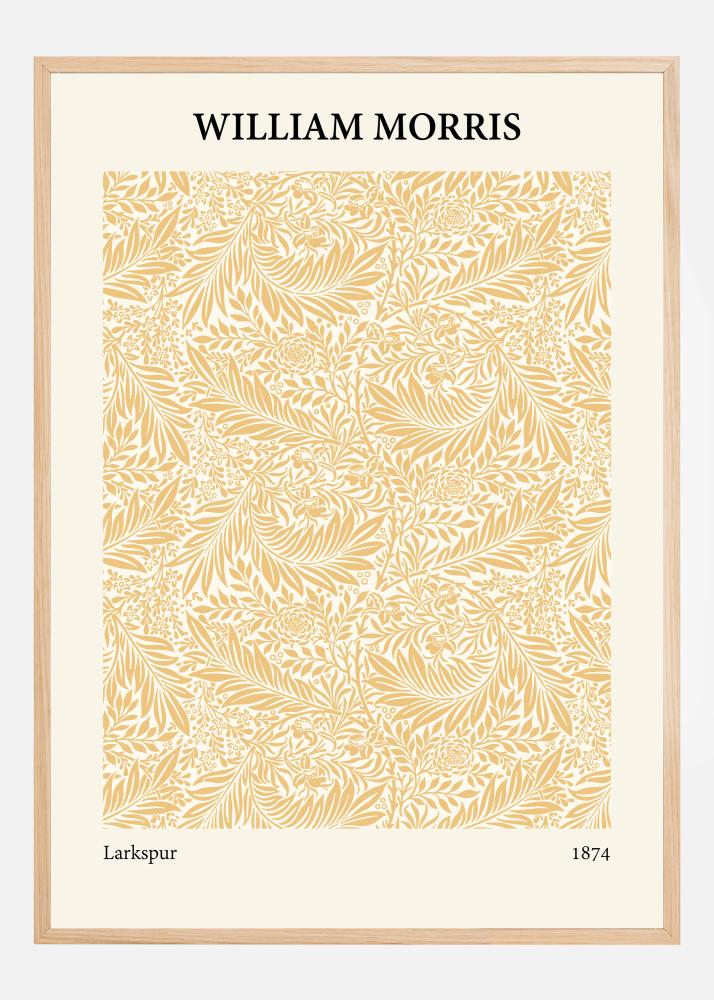 Con su cálido tono dorado monocromático, este cartel recrea el diseño espléndido de "Larkspur" de William Morris de 1874. La rica composición de hojas y flores baila sobre el papel, ilustrando la habilidad y precisión por la cual Morris es conocido en el movimiento Arts and Crafts. Este póster aporta una sensación de calidez y luz solar a cualquier habitación y es un maravilloso homenaje a la artesanía de la era victoriana.