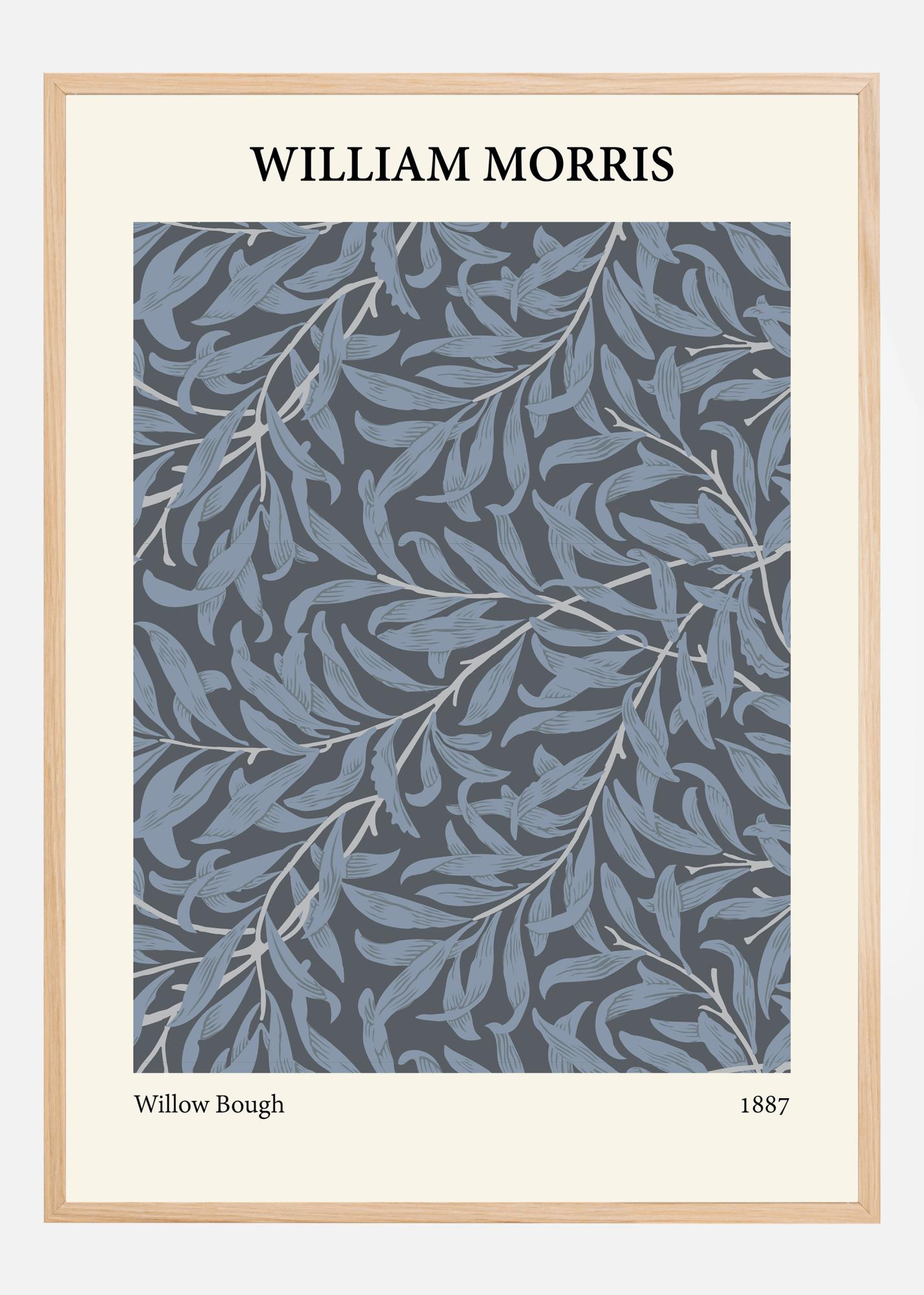 Este póster es una hermosa representación del diseño "Willow Bough" de William Morris de 1887, que muestra la forma elegante de las hojas de sauce en una sofisticada paleta de tonos azul grisáceo. Este patrón es un excelente ejemplo de la habilidad de Morris para combinar estética con motivos naturales, creando una impresión tranquila y acogedora que encaja en muchos estilos de decoración diferentes.