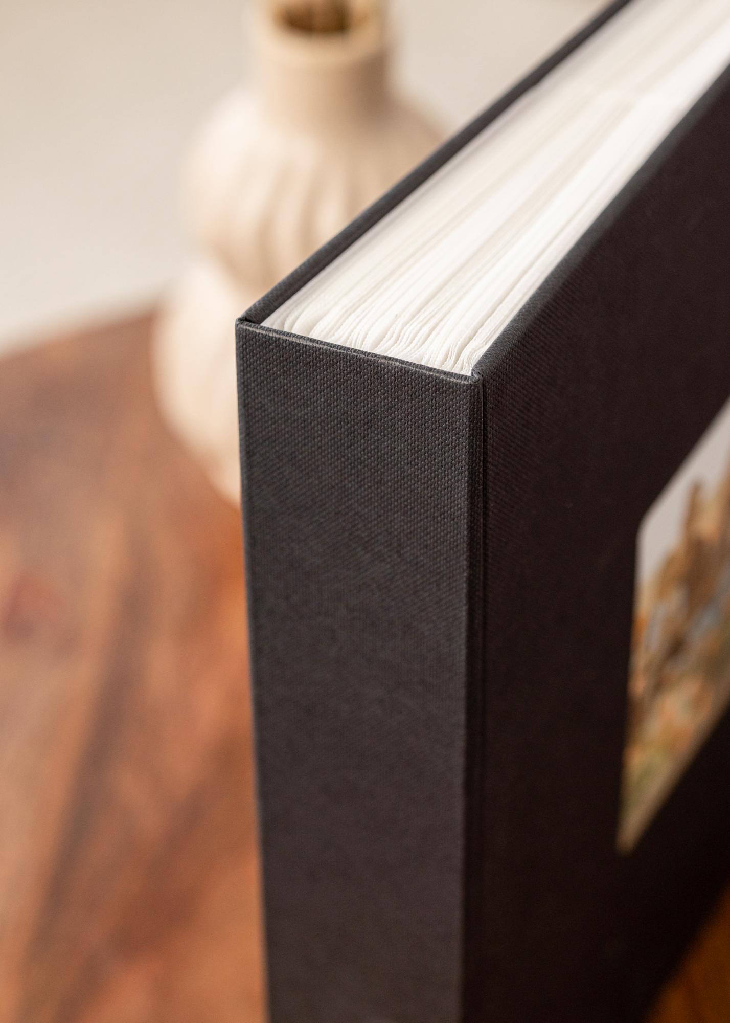 Las cubiertas del álbum son de un color negro clásico que brinda una sensación atemporal y sofisticada. Las páginas blancas dentro del álbum crean un hermoso contraste y resaltan sus imágenes de la mejor manera. La orientación de las imágenes en el álbum es tanto horizontal como vertical, lo que le brinda flexibilidad para organizar sus fotos como desee.