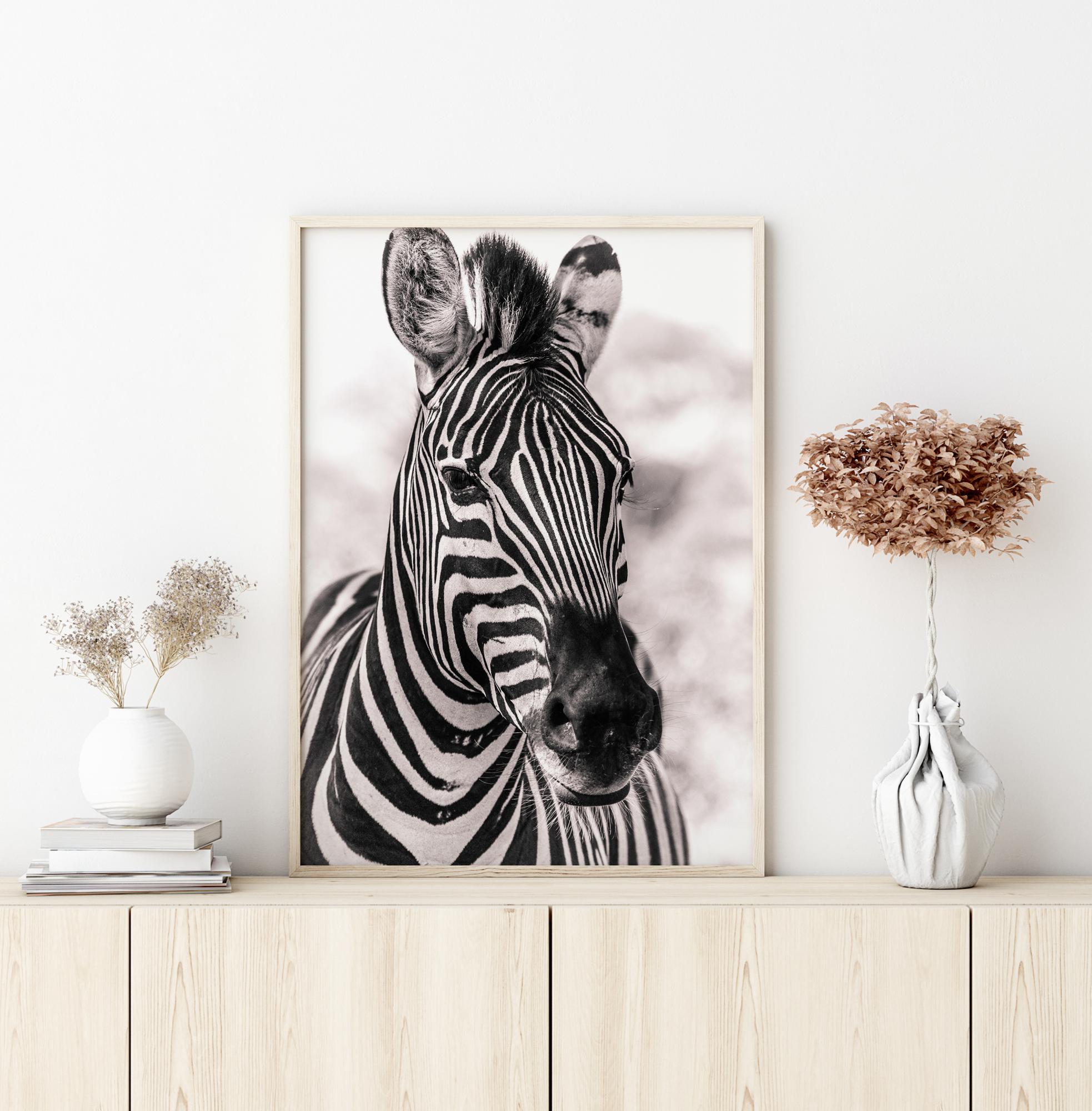 Póster gráfico con un primer plano de una cebra. El póster es perfecto para colgar como parte de una galería de pared con animales salvajes, tanto en forma de ilustraciones como de fotografías, que se convierte en un punto focal en la habitación. El motivo gráfico en blanco y negro elegante hace que el póster sea igual de adecuado tanto para el hogar como para entornos públicos. Combina la impresión con un marco negro de perfil fino para resaltar el diseño de la cebra de la mejor manera posible.