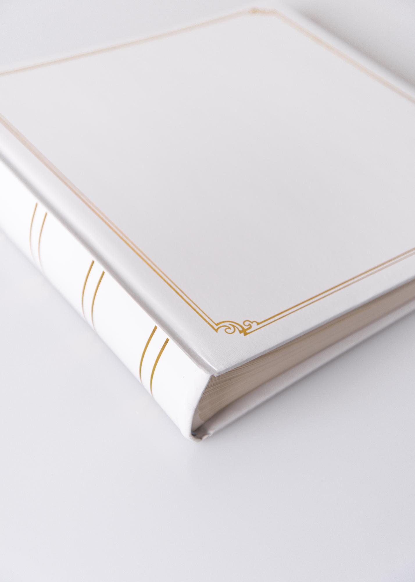 ¿Tienes tantas fotos que necesitan ser organizadas que temes el día en que tengas que ocuparte de ello? ¡Entonces consigue este práctico álbum con hojas autoadhesivas en su lugar! La carpeta es blanca con elegantes decoraciones doradas y en su interior encontrarás 100 páginas que puedes llenar rápida- y fácilmente con recuerdos de papel de diferentes tamaños.